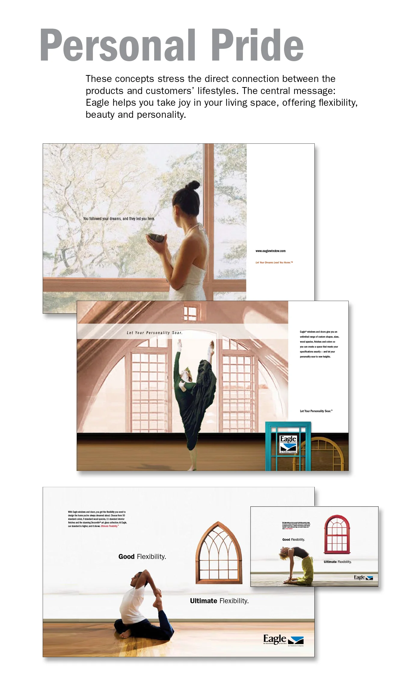 Eagle Windows was acquired by Andersen Windows and was in need of a brand alignment. This was the first of that effort–a national ad campaign that ran in trade publications including: Residential Architect, Upscale Remodeling and Custom Home. I told the story of the architect's vision for the space he created: Inspiration can come from anywhere. The ability to fulfill it comes from Eagle. I designed the ad campaign, the first running ad and directed photography on location in Colorado.