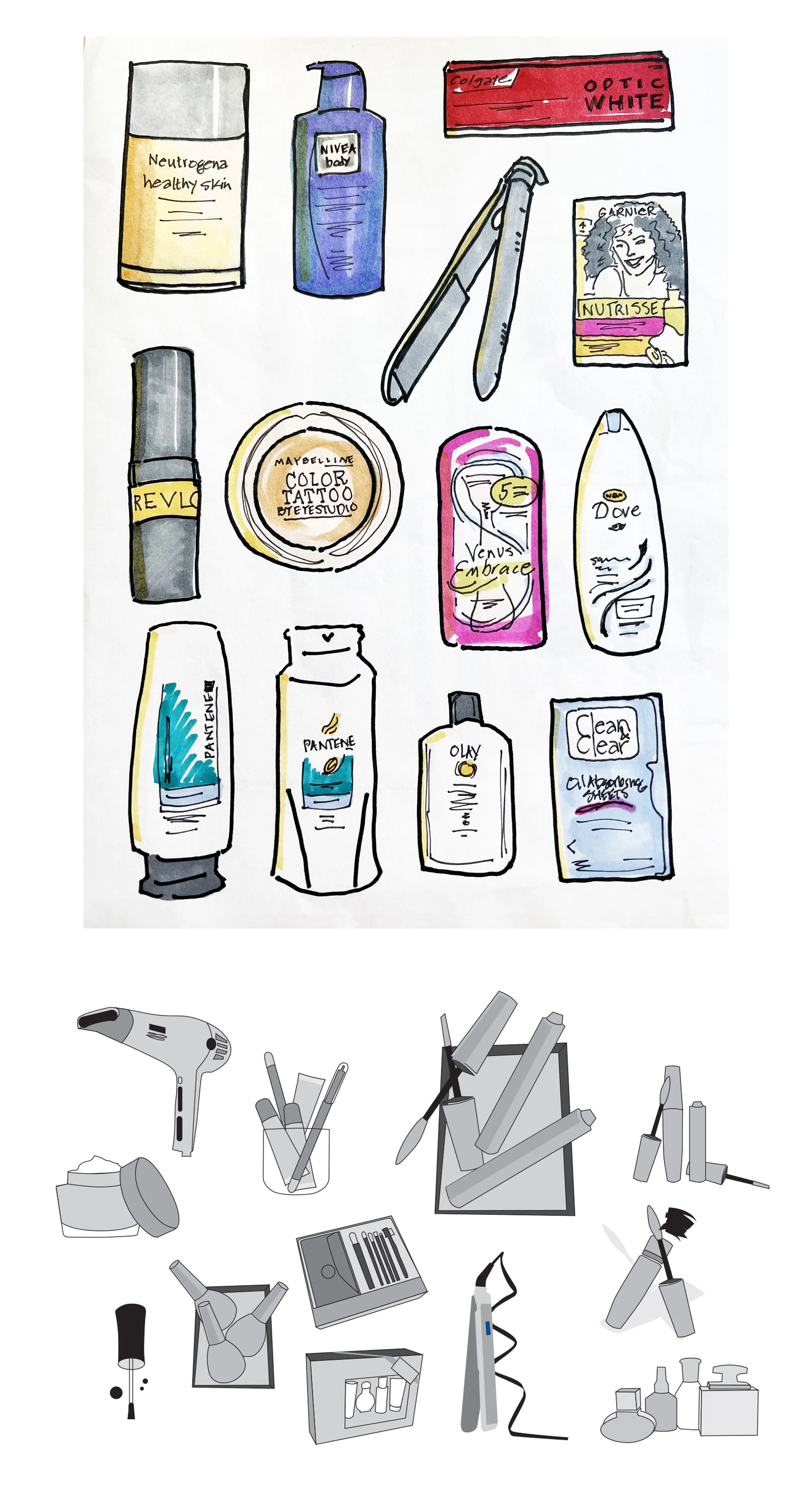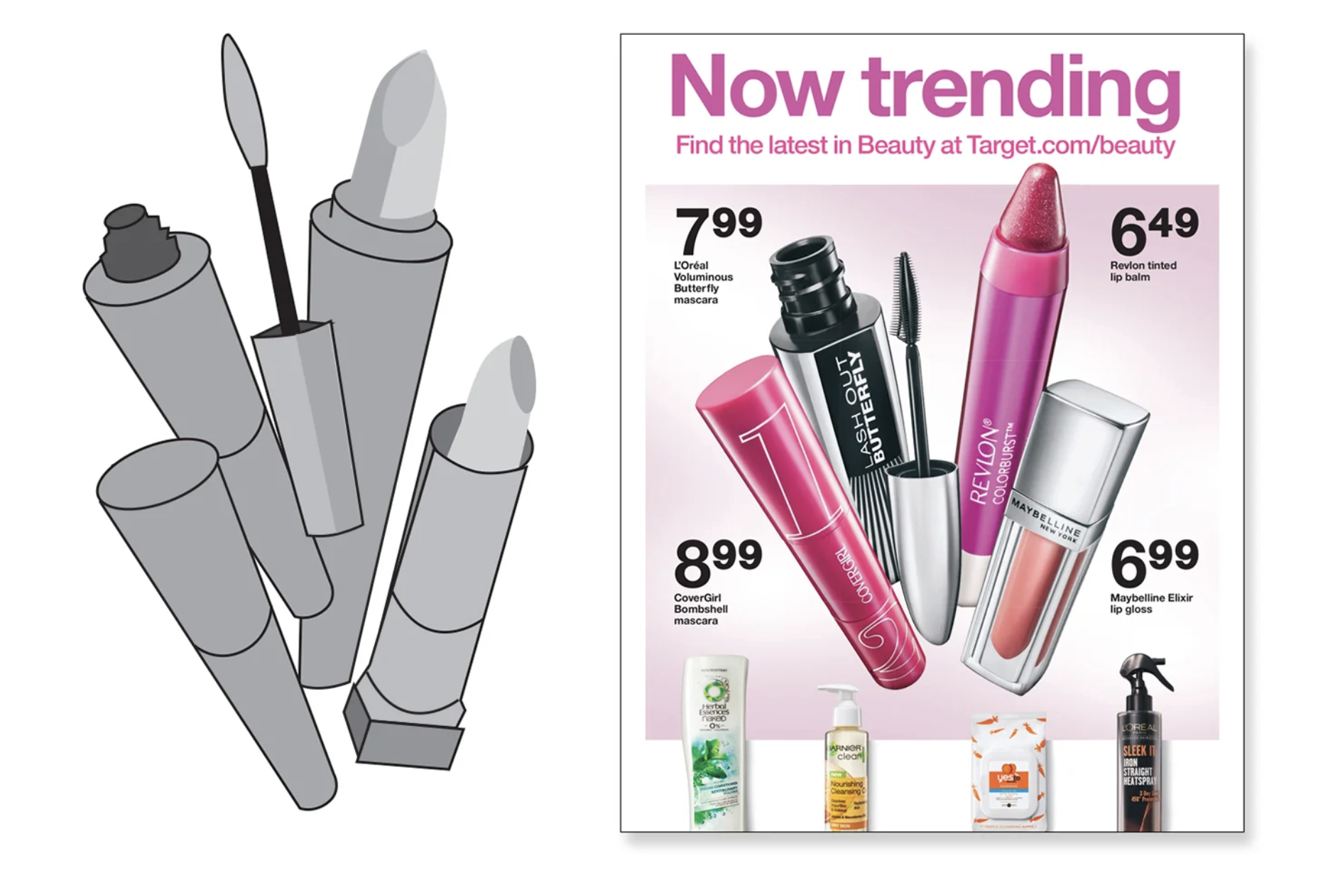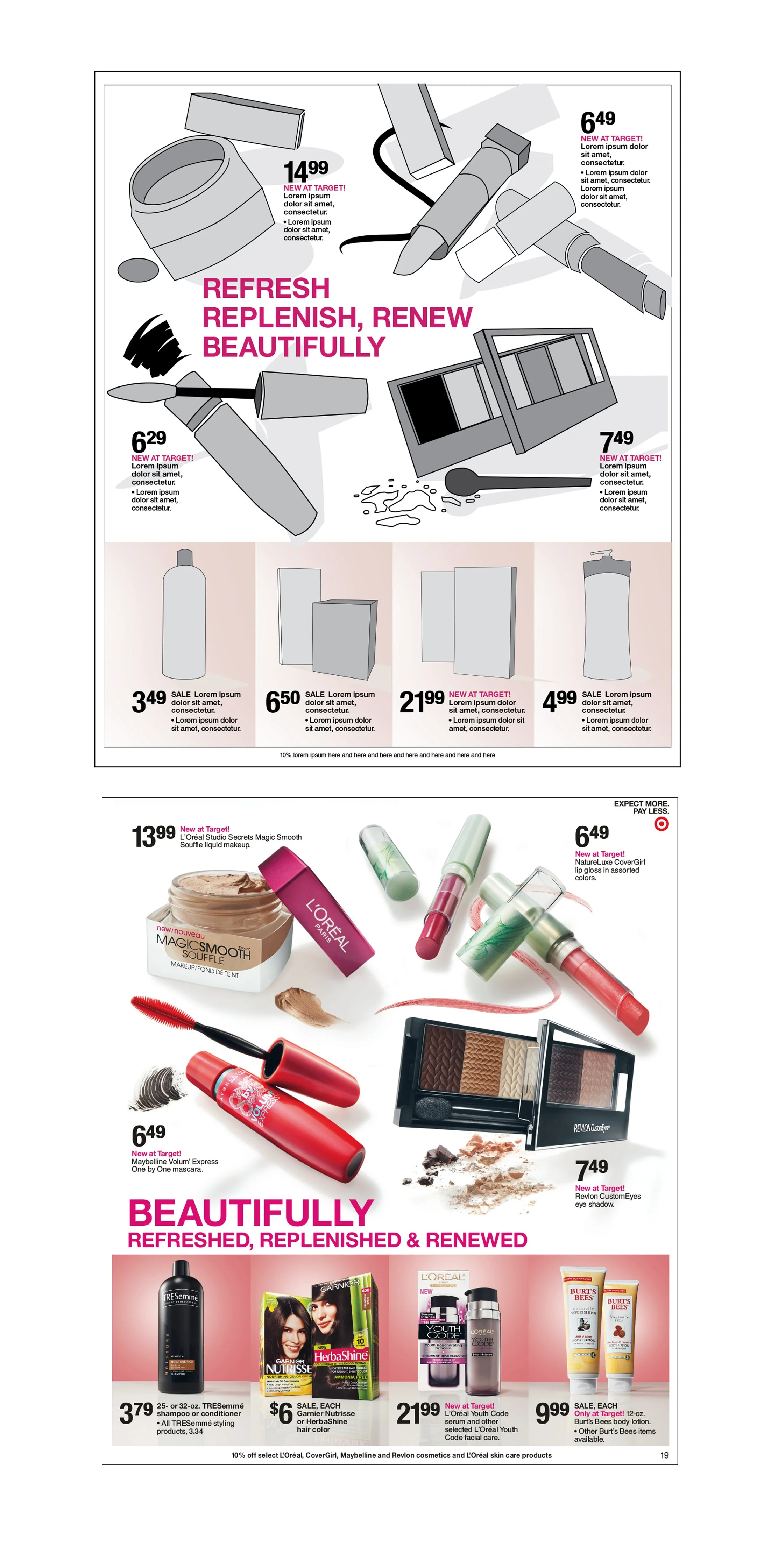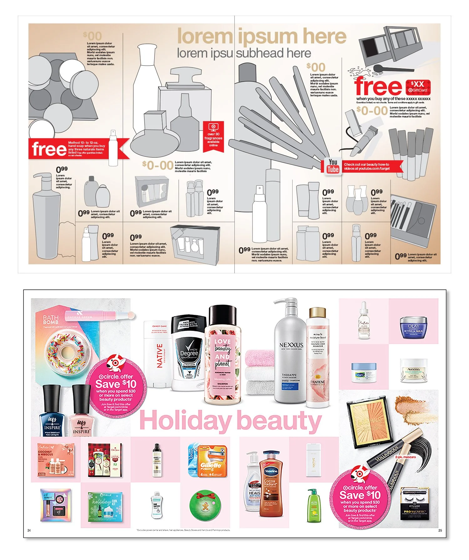 Some of my favorite work I do at Target is in the beauty world. Typically, I will sketch out a page to have a clear point of view on the layout and then use that same sketch for photography direction.